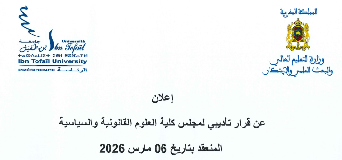 • إعلان عن قرار تأديبي لمجلس كلية العلوم القانونية والسياسية المنعقد بتاريخ 06 مارس 2026