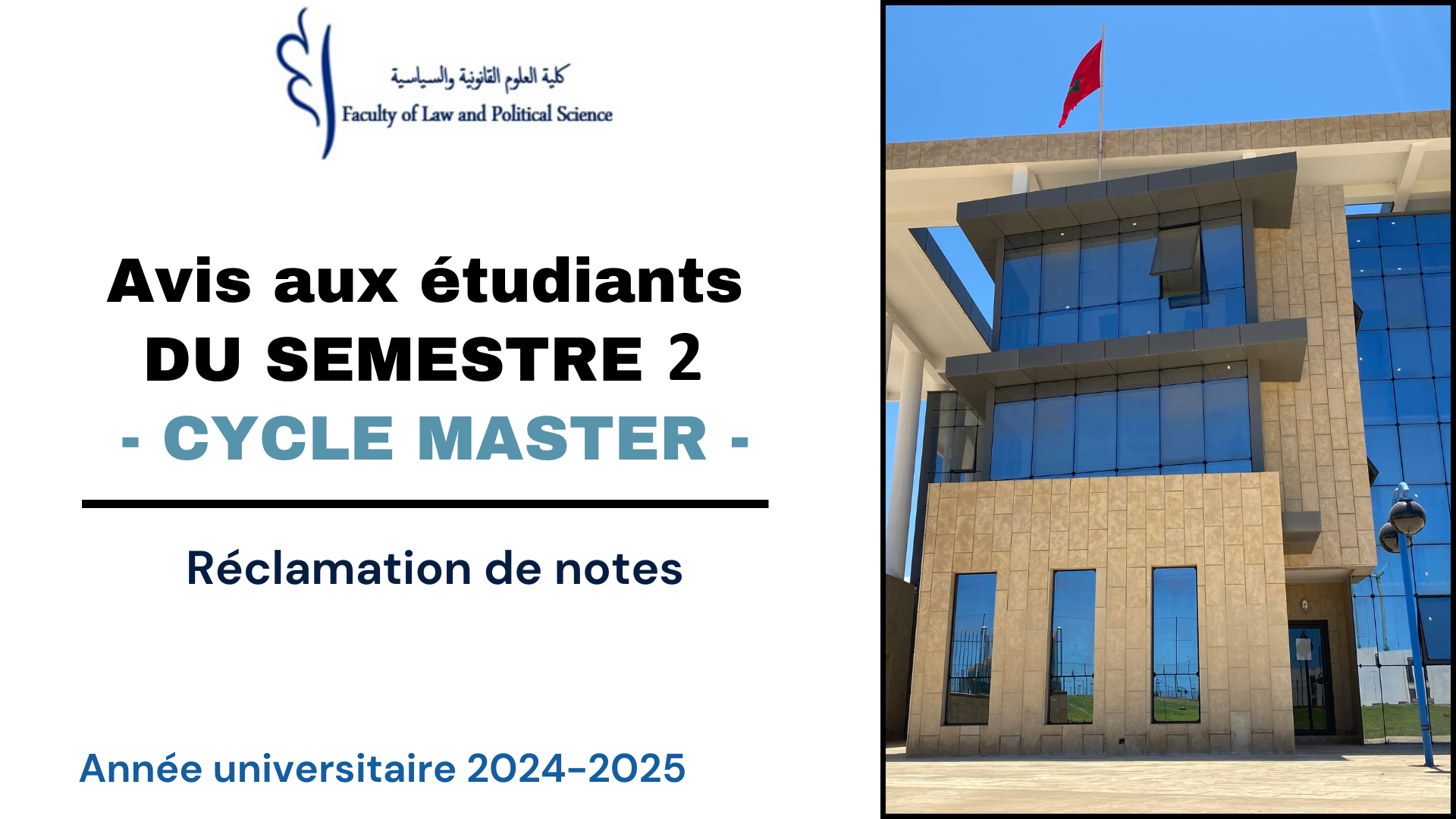 octobre 10, 202510 octobre 2025إعلان لفائدة طلبة الماستر السداسي الثاني – طلبات التأكد من النقط – الدورة الربيعية العادية برسم الموسم الجامعي 2024 – 2025View Fullscreen