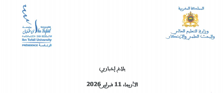 février 12, 202612 février 2026بلاخ إخباري ـ الأربعاء 11 فبراير 2026 ـ استئناف الأنشطة البيداغوجية والعلميةView Fullscreen