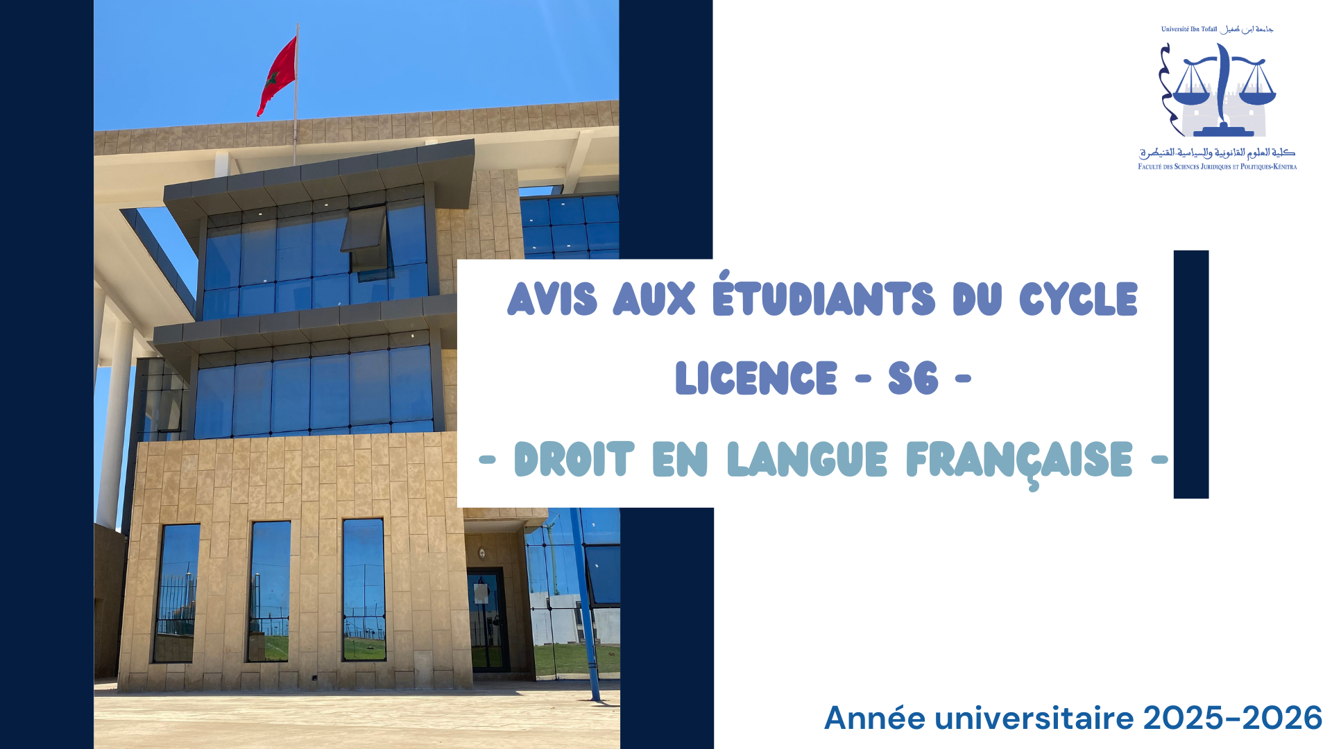 Emplois du temps (Session de printemps) -Droit en langue française – S6 – au titre de l’année universitaire 2025-2026